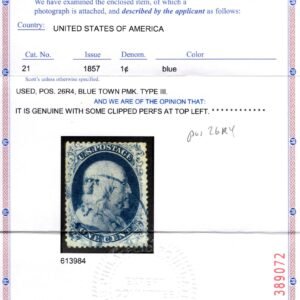 US 21 Early Classics Used F-VF , Sound but Lightly Clipped Perfs, PF Cert.