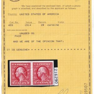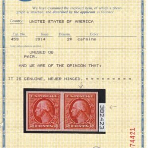 US Washington – Franklin #459 NH VF – XF 1914 Type I imperf coil single Cat Value: $425
