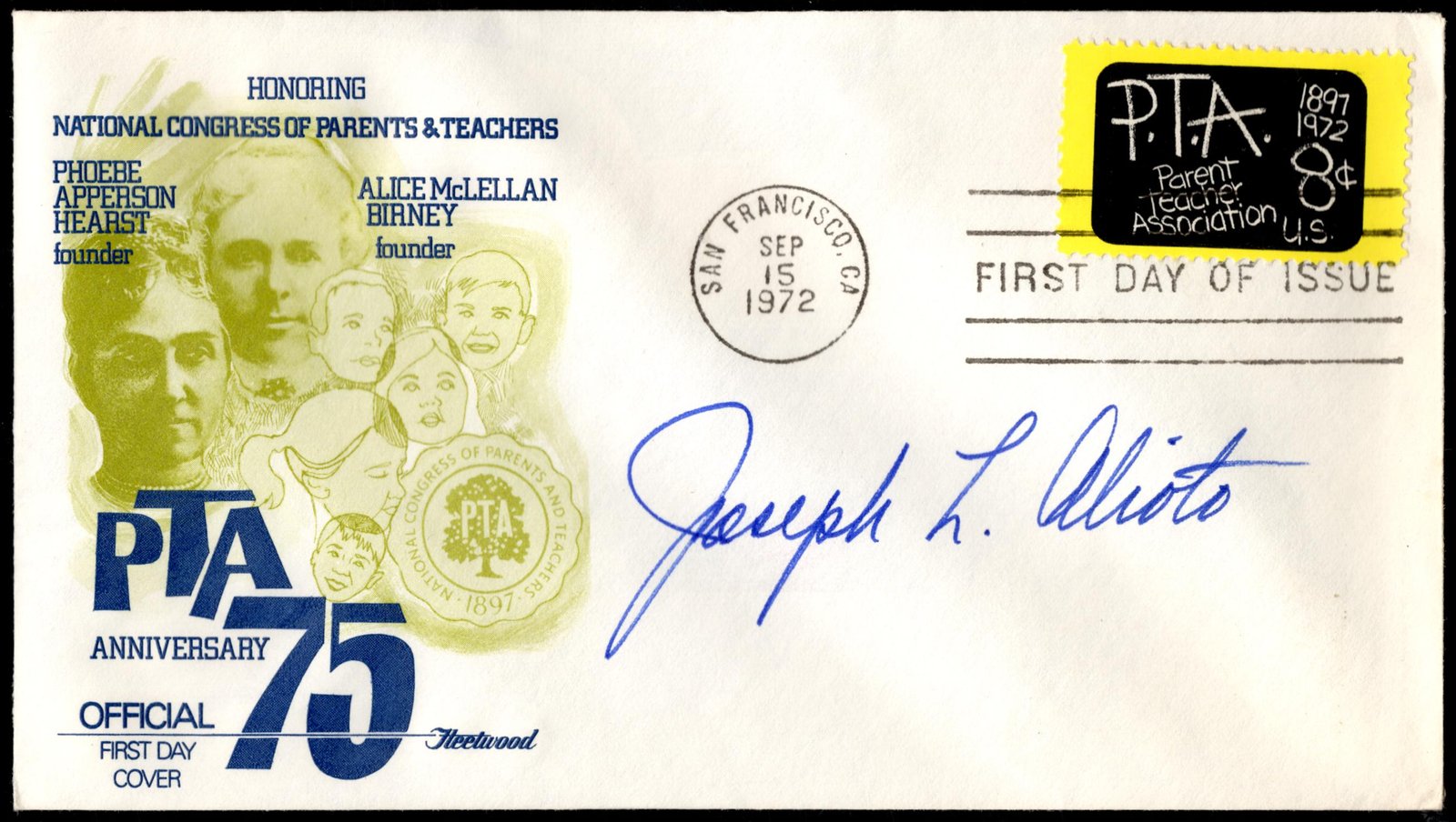 1972 #1463 FDC Signed by Joseph L. Alioto, Mayor of San Francisco, 1968-1976