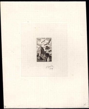 Algeria C10 Artist Die Proof, Birds, in Sepia, Signed