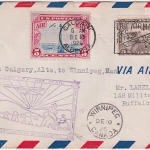 Canada / US 1928 (Dec 10)1st Flight Calgary – Winnepeg with US #C11, Signed by Pilot