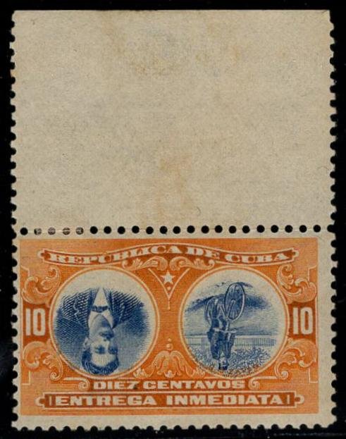 Cuba E4a LH F-VF Inverted Center of top sheet margin single. Same printing offset on reverse. Very fresh. Most auction prices are over Scott cv.   cv. 1250.