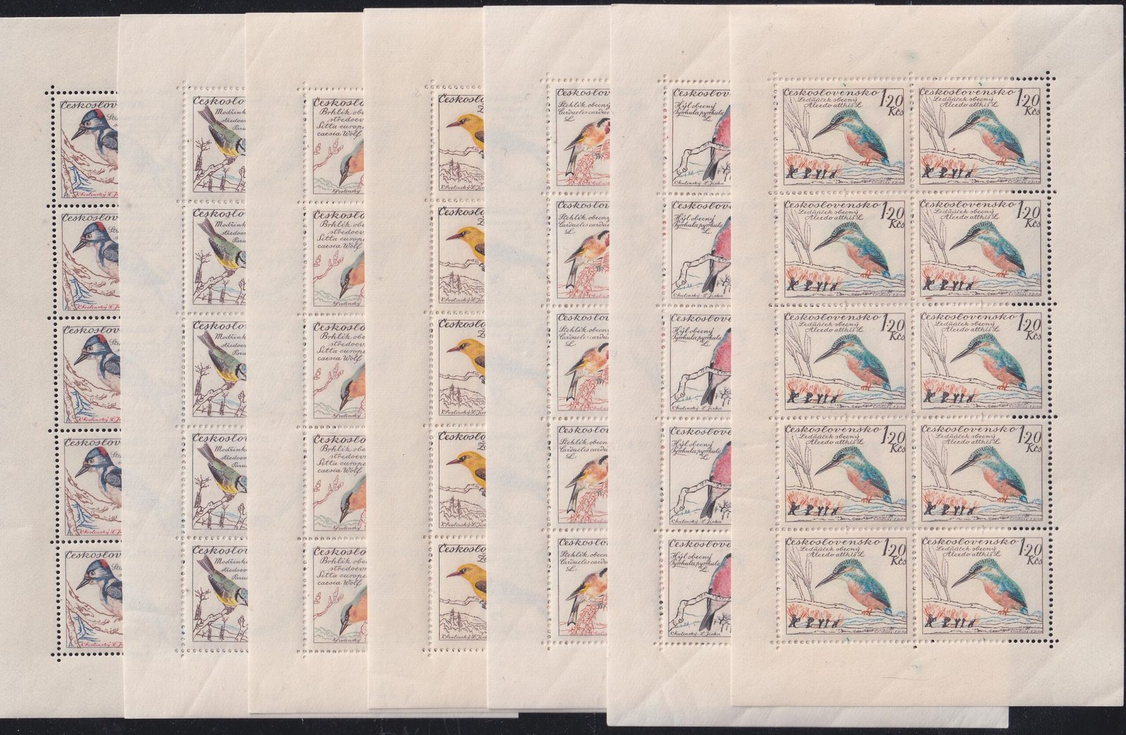 Czechoslovakia 1959 #942-948 NH Miniature Sheets of 10, Birds