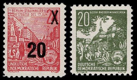 German Democratic Republic Propaganda Mi. 7, 10 LH VF Propaganda forgeries signed. cv €710 for NH