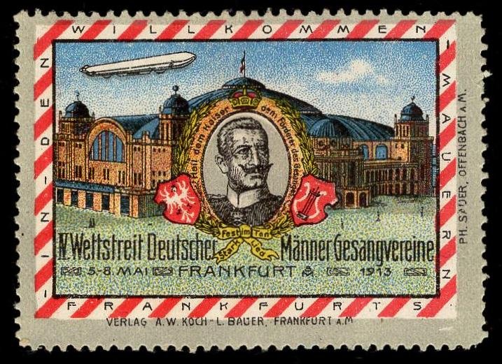 Germany 1913 Zeppelin over Frankfurt Vignette, Male Choir Competition