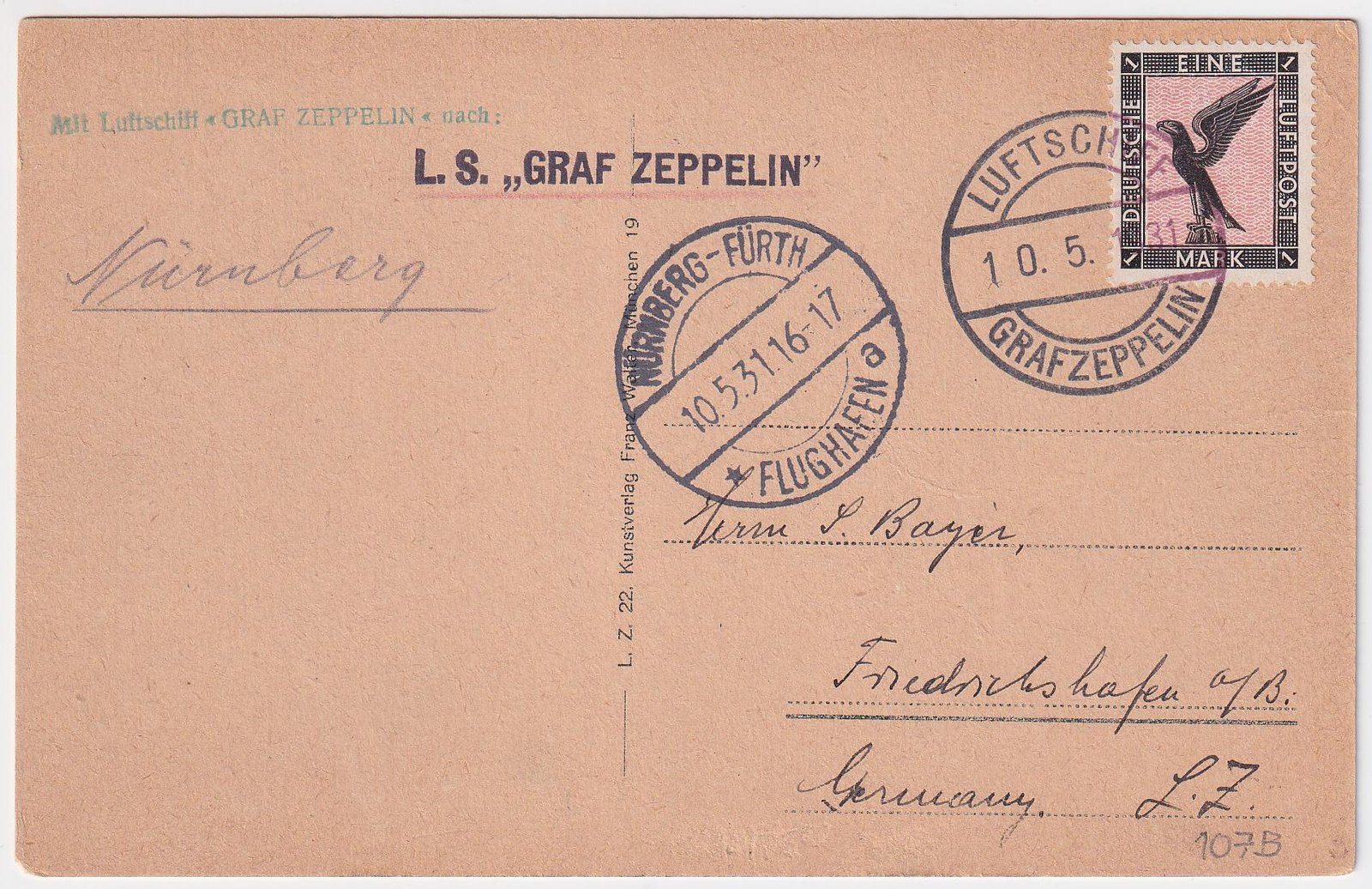 Germany 1931 Zeppelin Flight Card to Nürnberg with on Board Cancel. S107Bb €60