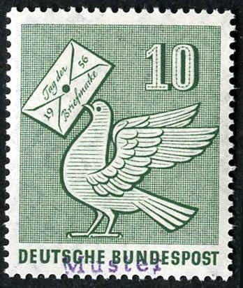 Germany 1956 752 Specimen Ovpt – Pigeon with letter, day of the stamp