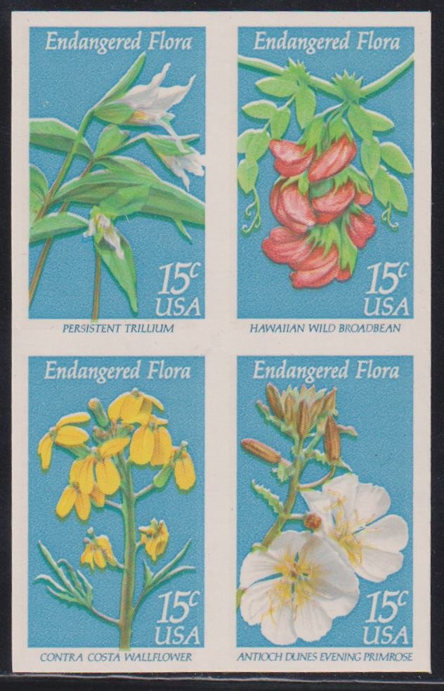 US Errors Post 1931 #1783-6b NH Mint Imperf flower block – Undercatalogued Cat Value: $200