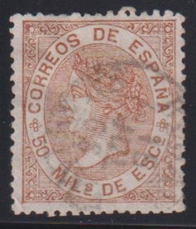 Spain #95 Used VF 1868 cds Cat Value: $17.50