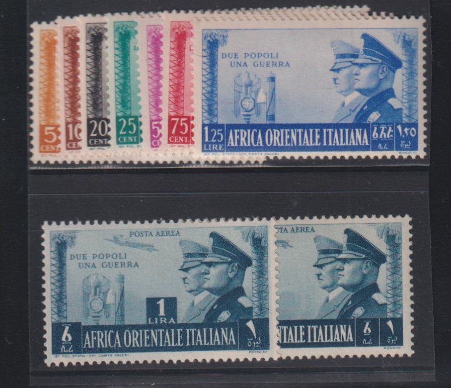 Italy and Italian Area – E Africa #34-40,C18-19 LH Mint VF hitler and mussolini Cat Value: $174.75