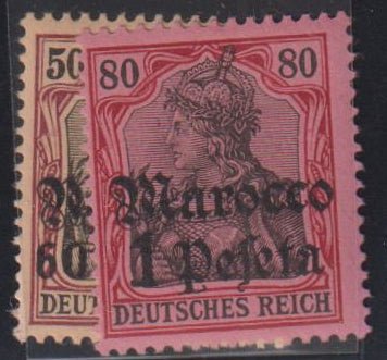 German Colonies – Morocco #27,28 LH Mint F – VF 28 possible NH Cat Value: $40