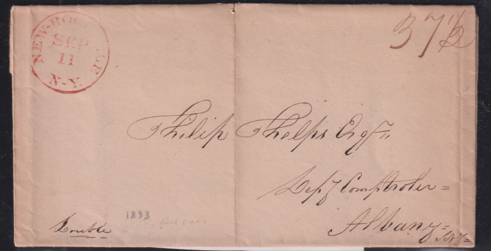US Classics # F – VF 9/11 1833 37 1/2 rate to Albany folded letter