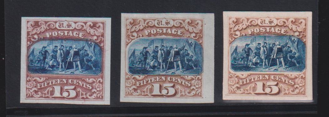 US Essays and Proofs #119P3,129P3,129P4 NH Mint XF Large margins 15 and type 2 and 3 perfs Cat Value: $610