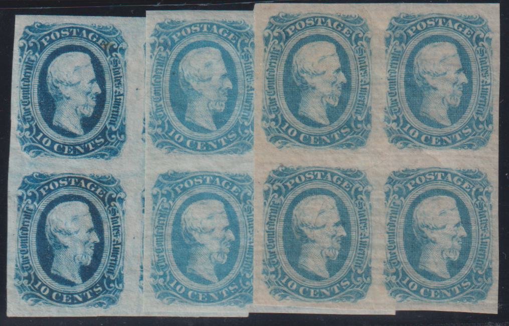 US Confederates #12,12b,12d LH Mint VF 3 no gum bloack blie light bloe dark blue Cat Value: $330+