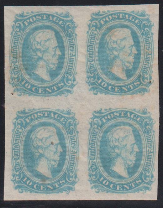 US Confederates #11a LH/NH Mint Milky blue block Cat Value: $220+