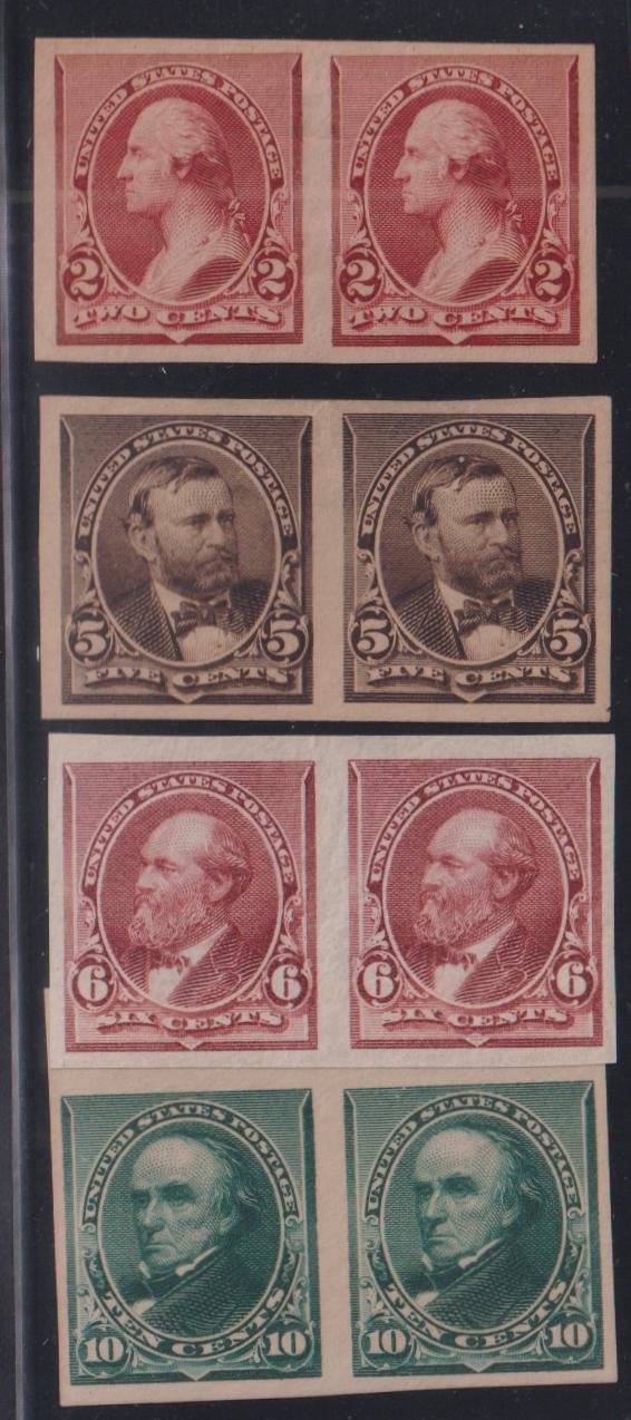 US Essays and Proofs #219P5 223P5 224P5 225P5 Hinged Mint VF plate proof pairs with gum each minor thin on thin spots Cat Value: $855