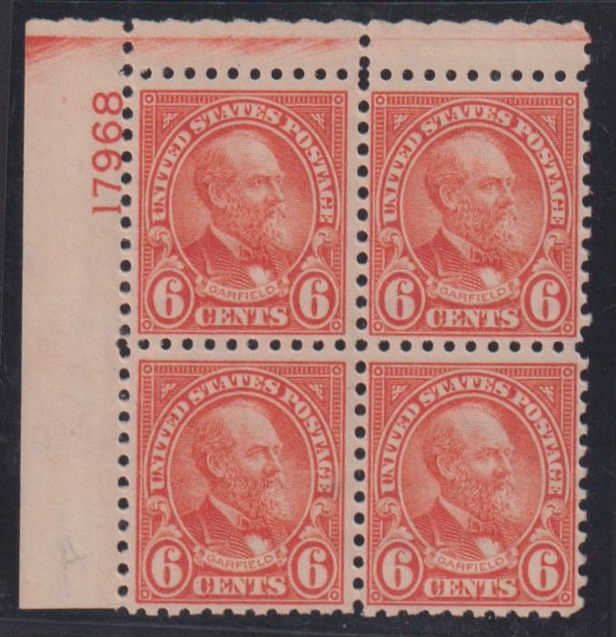 US Modern #587 NH Mint F+ Fresh NH plate number block Cat Value: $325
