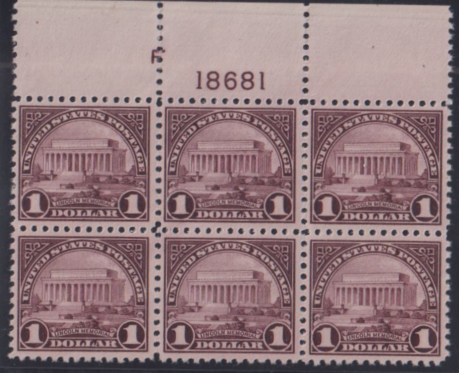 US Modern #571 NH F – VF top plate block few light natural gum skips pristine Cat Value: $525