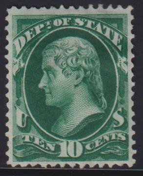 US Officials #O62 Hinged F – VF Deep rich color, disturbed OG from hinge but not thin Cat Value: $250