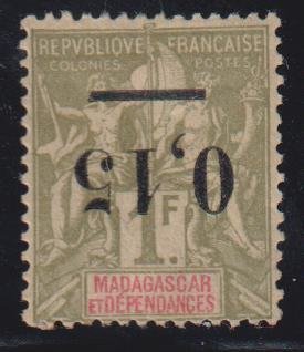 French Colonies and French Area – Madagascar #55a Hinged Mint F – VF Inverted Surcharge Signed Block Cat Value: $110