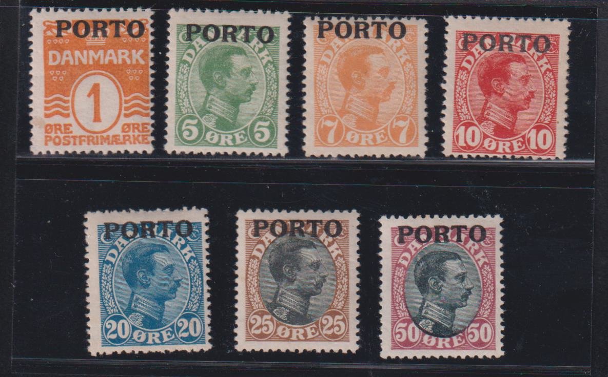 Denmark #J1-7 Hinged Mint F – VF Neat Hinge remants, few signed Cat Value: $110