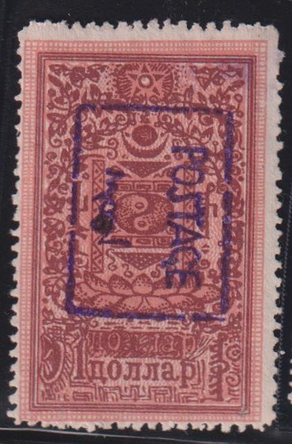 Mongolia #22 F – VF Light cancel – looks unused Cat Value: $475