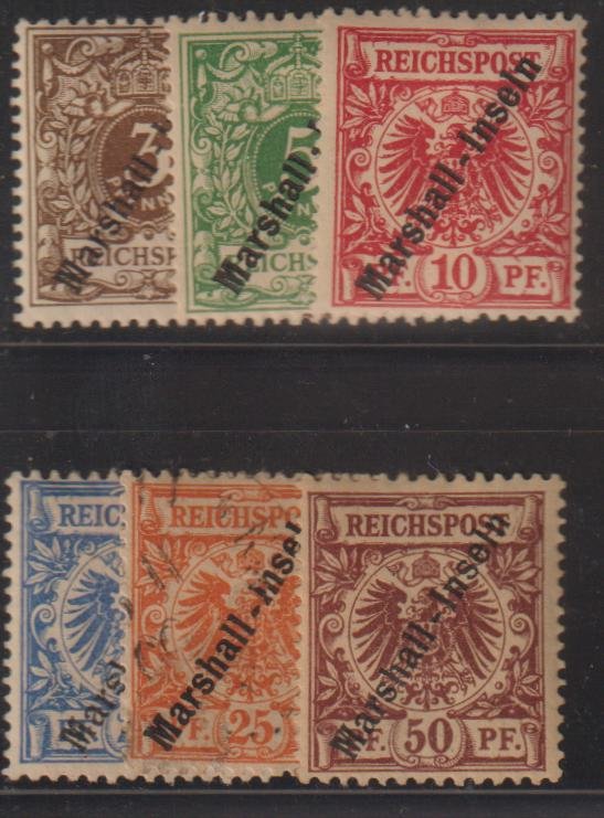 German Colonies – Marshall Islands #7-12 Hinged Used F – VF Cat Value: $107.25