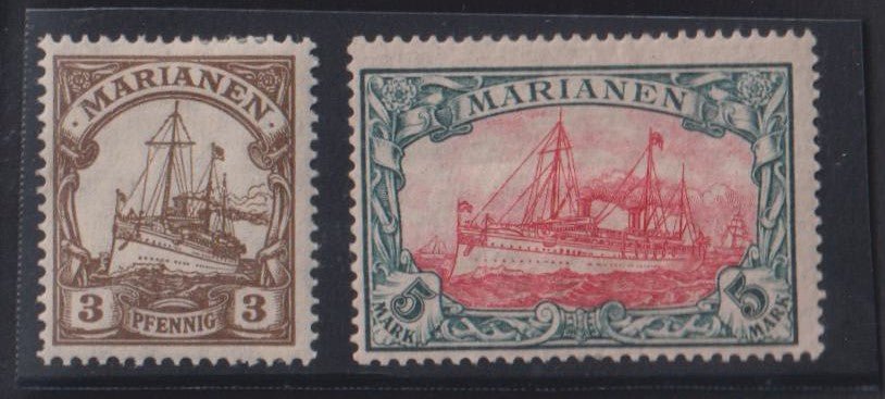 German Colonies – Mariana Islands #Mi20-1 Hinged F – VF With WM Mi 20-21B 25i17 Cat Value: Michel €41 Scott: $31