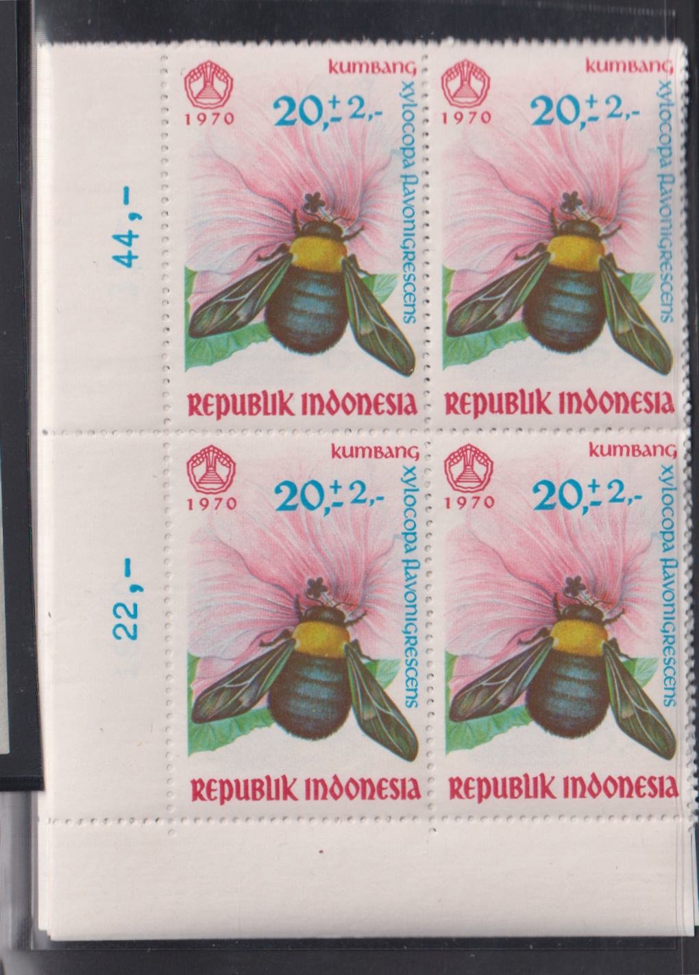 Countries A – M – Indonesia #B223-5 NH Mint Corner Block – Insects Cat Value: $120 as single