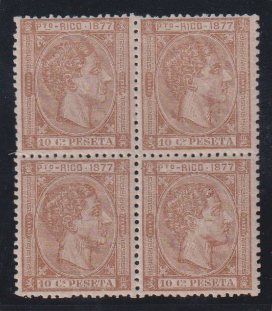 Countries – N- Z – Puerto Rico #14a LH Mint XF Color error in brown Exceptional block of 4 rare so well centered Cat Value: $1200+