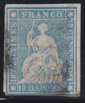 Switzerland #21 Used VF – XF 4 Full frame lines 3.5 margins around Cat Value: Zumstein: ₣160 Scott: $125