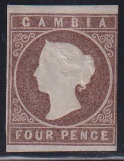 British Area A- M – Gambia #3 Hinged Mint F Watermark inverted Cat Value: Stanley Gibbons: £900