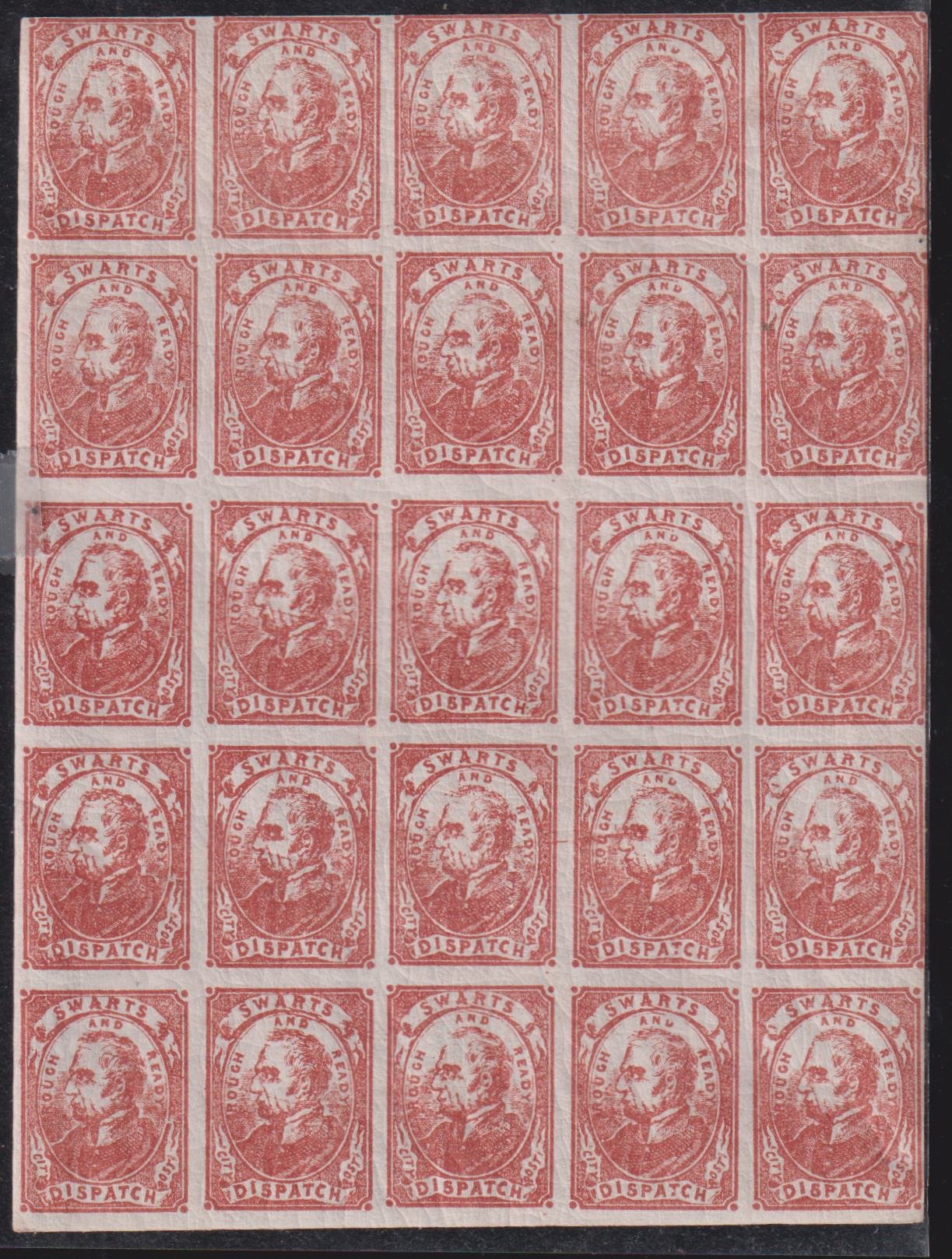 US Locals and Carriers #136L4 NH Swart’s city dispatch post Full sheet of 25, OG, NH Cat Value: $600