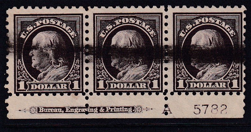 US Washington – Franklin #478 Used AVE – F Plate# imprint strip of 3 Cat Value: $67.50