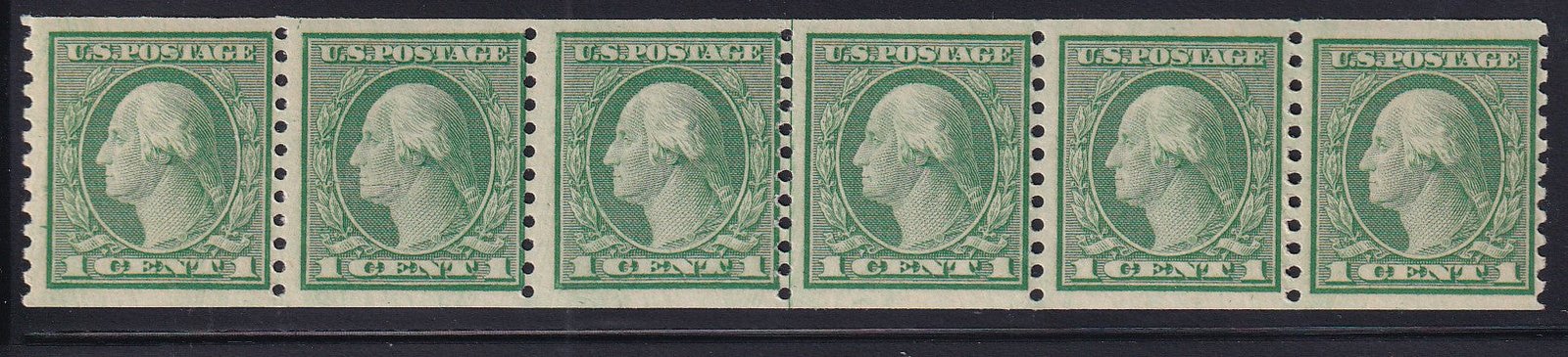 US Washington – Franklin #490 NH Mint F Line strip of 6 2nd stamp cracked plate