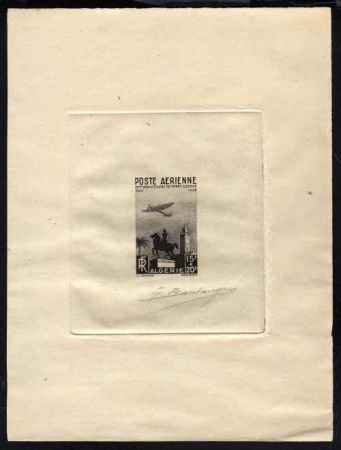 Algeria CB3 Artist Die Proof, Airplane, Clock Tower, in Black, Signed