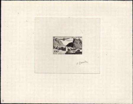 Algeria C9 Artist Die Proof, Airplane, Sepia, SIgned