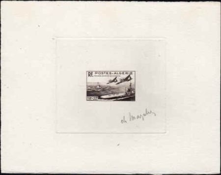 Algeria B56 1949 Artist Die Proof, Airplane, Sepia