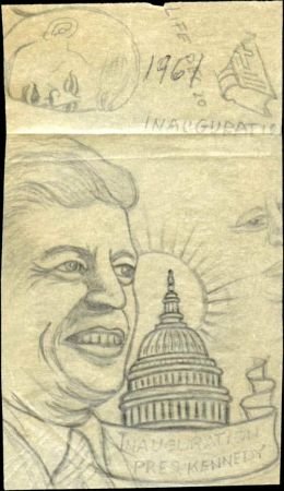 Ralph Dyer Artwork : 1961, John F. Kennedy Inaugural, 2 different drawings.