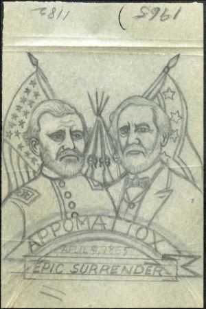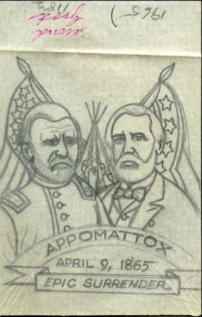 Ralph Dyer Artwork : Scott 1182 : 1965, Lee and Grant at Appomattox, 2 different drawings