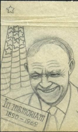Ralph Dyer Artwork : Scott 1383, 1969 : Dwight D. Eisenhower, 2 different drawings.