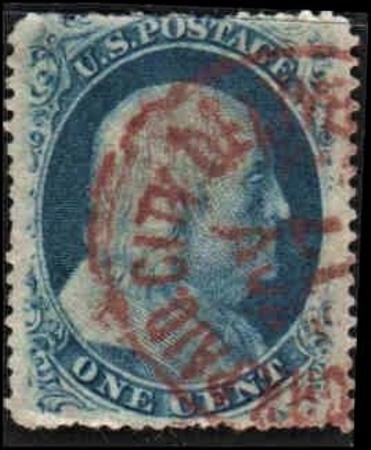 Fancy Cancels : Scott 24, Avg Used Single. Red NY City Delivery. S&E: PM-CR8 (Stamp may be type VA )