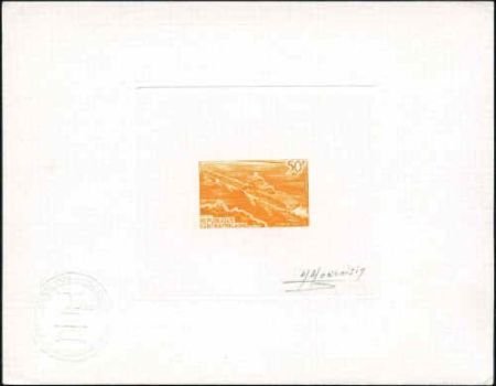 Central Africa 1968 Artist Die Proof. Scott 112, 50fr signed proof in orange. RIVERBOAT.