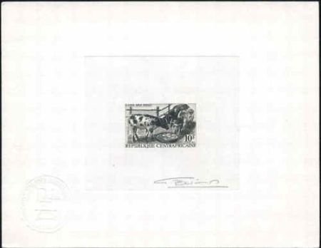 Central Africa 1968 Scott 102 Signed Artist Die Proof in black, 10fr. Baoule Cattle, ANIMALS.