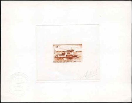 Central Africa 1968 Artist Die Proof :Scott 110, 10fr signed proof in orange brown. River Boat.