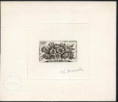 Artist Die Proof: Congo, 1961, Scott C4 Signed proof in sepia. FLOWERS.