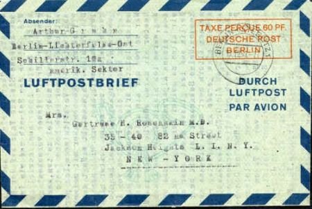 • Germany 1949 Berlin Aerogram, VF commercially used to NY.