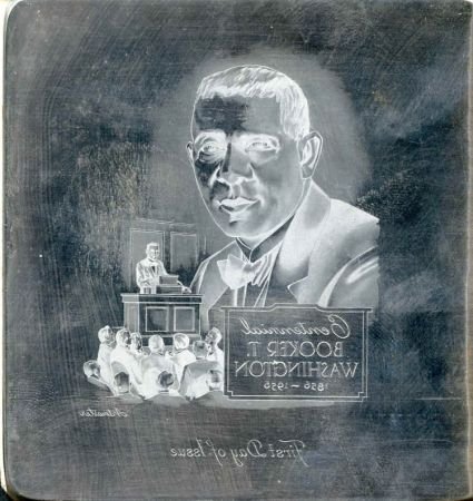 US Artmaster Scott 1074 1956 Booker T. Washington, Log Cabin – Plate