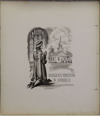 US Artmaster Scott 1099 1957 Religious Freedom, Bible, Hat and Quill – Artwork