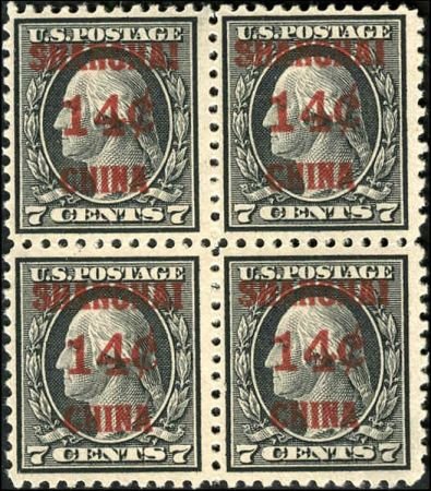 US Shanghai Overprint K7 F – VF NH Block of 4